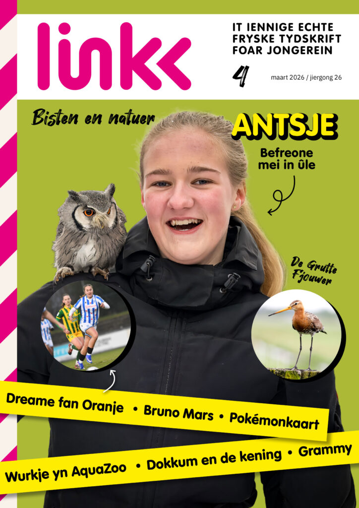 Bisto in echte bistefreak? In natuerleafhawwer yn de dop? Of gewoan nijsgjirrich? Dizze LinKk mei as tema ‘bisten en natuer’ is der foar elkenien. Wy nimme dy mei nei bûten, tusken it grien en it sjongen fan de fûgels. Do lêst oer Antsje dy’t in ûle as húsdier hat, fynst in gedicht oer de Fryske Freek Vonk en moetest De Grutte Fjouwer (ús belangrykste greidefûgels). Lit dy ynspirearje troch alles dat krûpt, fljocht en slûpt!